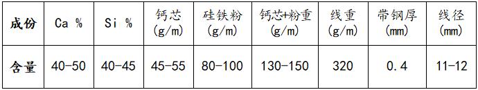 實(shí)芯硅鈣線由外層鋼帶包覆內(nèi)層鈣絲和硅鐵粉軋邊咬合而成。